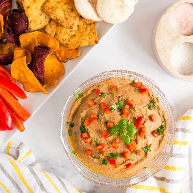 Mediterranean Hummus Recipe (Without Tahini!) https://www.polishedhabitat.com/mediterranean-hummus/ https://www.polishedhabitat.com/mediterranean-hummus/#respond Fri, 18 Oct 2019 12:00:03 +0000 https://www.polishedhabitat.com/?p=14558 We have a few favorite hummus recipes, but we make our Mediterranean hummus most often because you make it without tahini. Plus, it’s delicious!  On busy weeknights, we often declare it “dip duo” night for dinner and pair the hummus with either guacamole or pimento cheese. It’s also our most requested item to bring when ... Read More about Mediterranean Hummus Recipe (Without Tahini!)